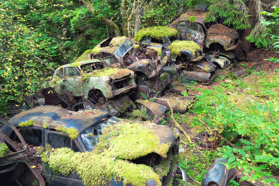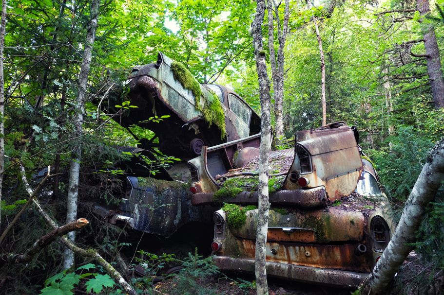 Der spannendste Autofriedhof, den ich bisher besucht habe, war der in Schweden. Ein verwunschener Ort, an dem rostige Karossen zwischen Moos und Bäumen langsam mit der Natur verschmelzen.